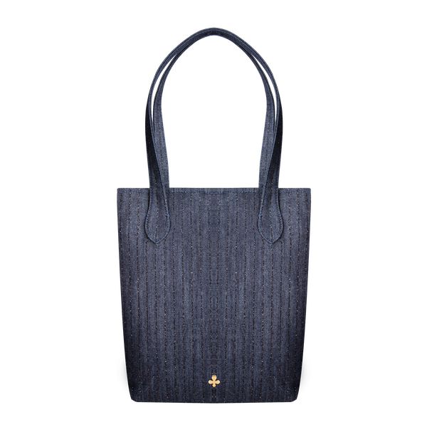 Torba w kolorze ciemnego jeansu z czarną podszewką. Wykonana z najwyższej jakości włoskiej tkaniny jeansowej z delikatnymi glitterowymi prążkami Torba posiada: – dwie jeansowe rączki,- jedną wewnętrzną kieszeńTorba posiada możliwość zapięcia za pomocą magnesu. Torba została wykonana ręcznie, ozdobiona koniczyną Lilou w kolorze złota.Wymiary torby:Wysokość: 32 cmSzerokość: 35 cmGłębokość: 11 cmWysokość rączek: 27 cm