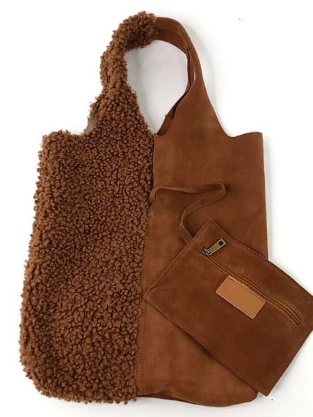 Amara Skórzana torebka „Teddy” w kolorze jasnobrązowym – 37 x 40 x 2 cm rozmiar: onesize