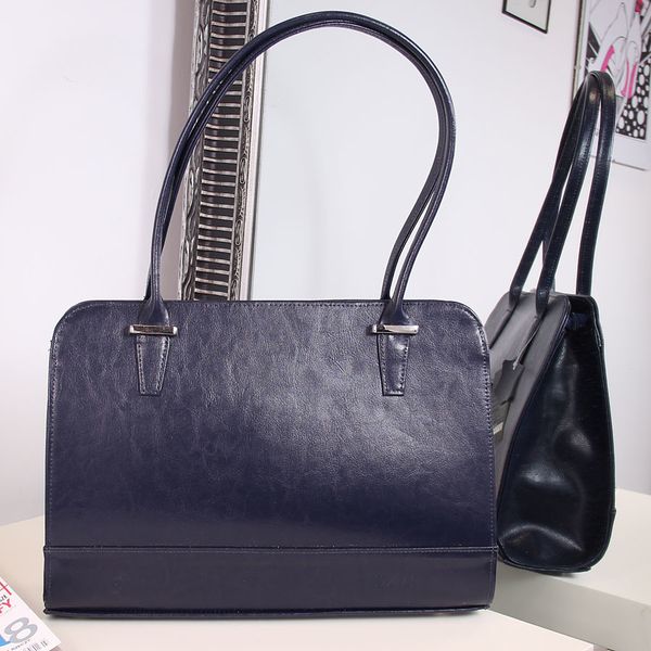 Skórzana torebka damska w kolorze granatowym, renomowanego polskiego producenta, marki DAN-A. Wzór stworzony dla kobiety eleganckiej, pewnej swojego stylu. Mieści format A4, wymiary 26 x 36 x 8 cm