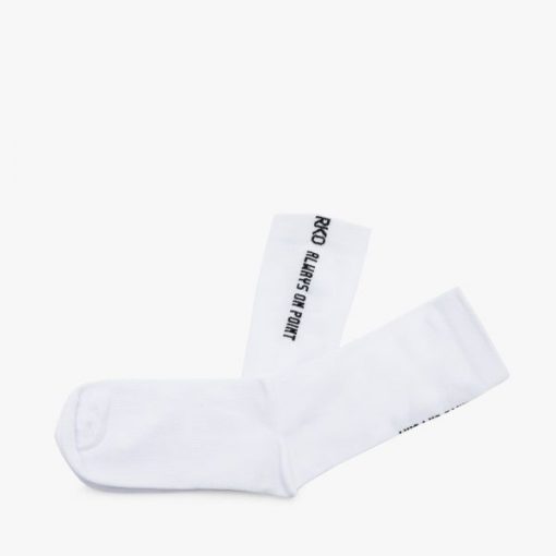 Skarpety bawełniane damskie w kolorze białym z napisami w kolorze czarnym.Elastyczny ściągacz.Skład: bawełna certyfikowana Oeko Tex 75%, poliamid 20%, elastan 5%