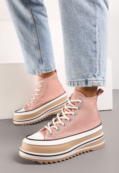 Różowe Trampki za Kostkę na Grubej Podeszwie z Wycięciami Aretiapia