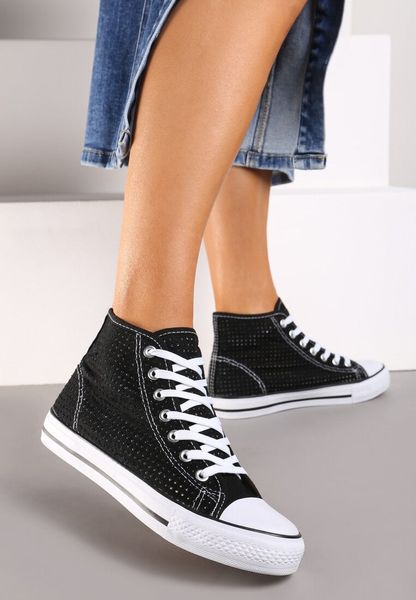 Czarne Trampki na Płaskiej Podeszwie za Kostkę z Perforacją Xelagia