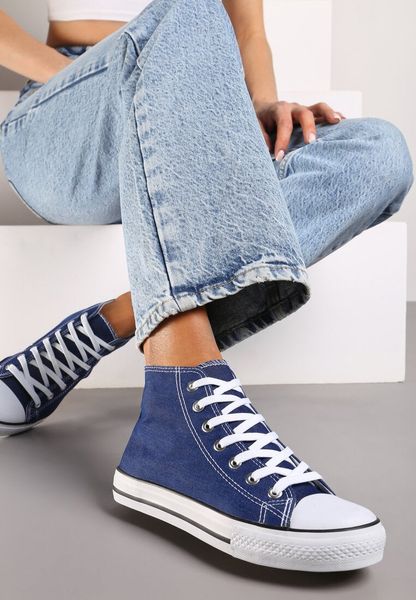 Granatowe Casualowe Sznurowane Trampki z Wysoką Cholewką Irmagia