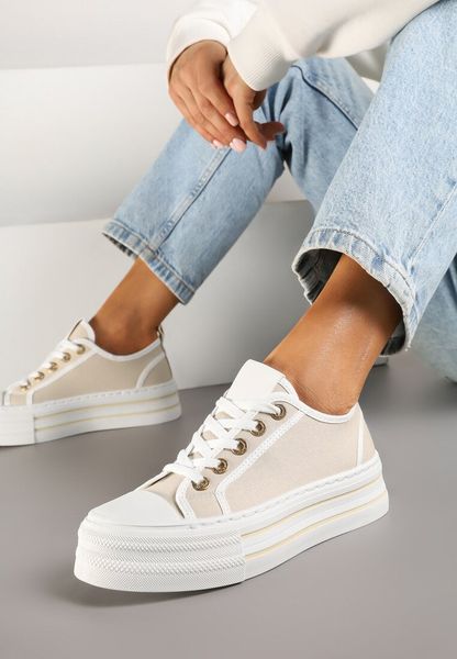 Beżowe Trampki na Niskiej Platformie Ozdobione Cyrkoniami Felelith