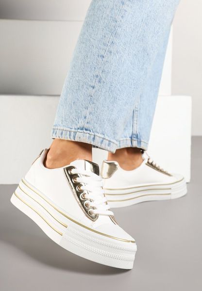Biało-Złote Trampki na Platformie w Casualowym Stylu Ravilne