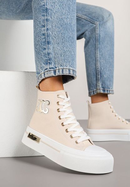 Beżowe Trampki na Platformie z Wysoką Cholewką i Naszywką Nurissea