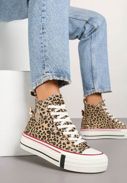 Panterkowe Trampki za Kostkę Ozdobione Aplikacją 3D Vizana