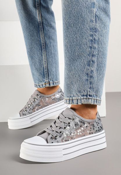 Szare Siateczkowe Trampki Vices na Platformie Zdobione Cekinami Telandria