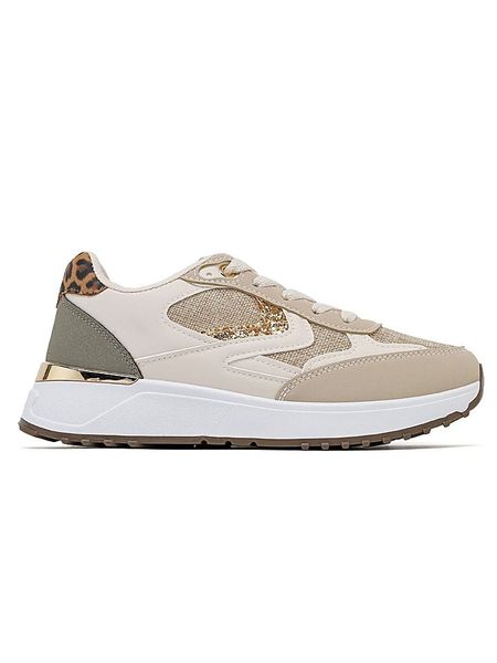 – zapięcie: sznurowanie- noski: zaokrąglone- noski i zapiętki: wzmocnione- dookoła gumowanie- podeszwa: antypoślizgowa- detale: metalicznie błyszczące elementy