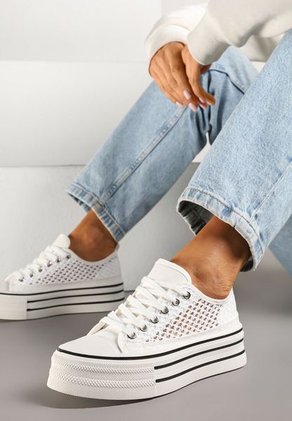 Białe Trampki na Platformie Ozdobione Koronką Emozi