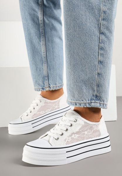 Białe Koronkowe Trampki Vices na Podwójnej Podeszwie Telosira