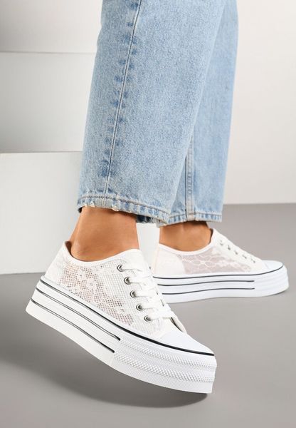 Białe Trampki Vices na Platformie przed Kostkę z Koronką Telaniris