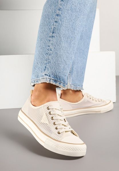 Beżowe Szydełkowe Trampki o Klasycznym Fasonie Vovessa