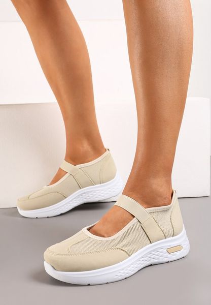 Ciemnobeżowe Wsuwane Tenisówki z Siateczką i Elastyczną Gumką Volema