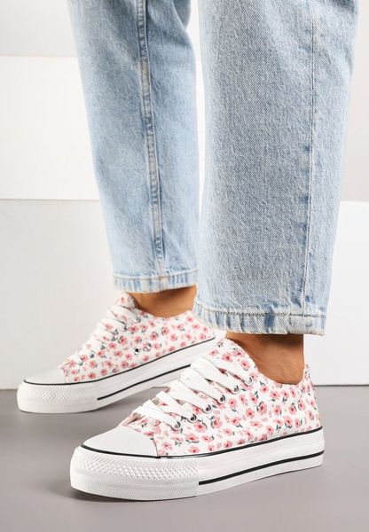 Różowe Casualowe Trampki w Kwiatki Foleriella