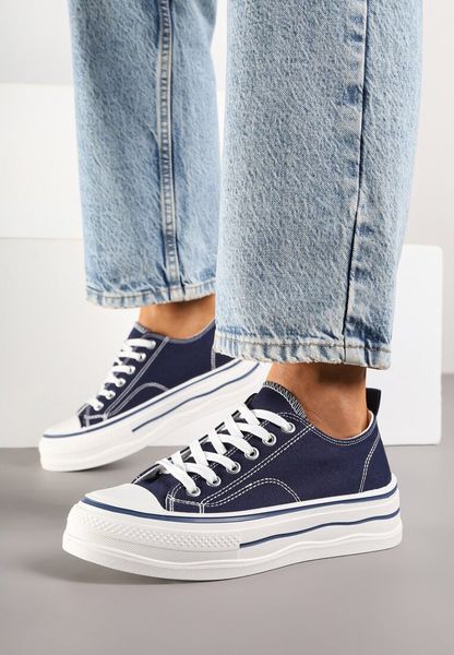Granatowe Klasyczne Trampki na Grubej Podeszwie Natileva