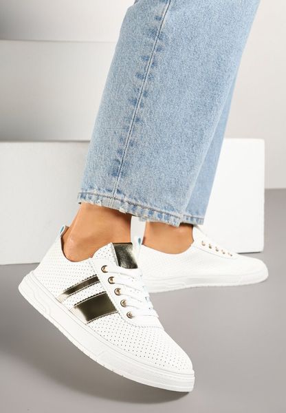 Złoto-Białe Tenisówki Ozdobione Paskami Meloti
