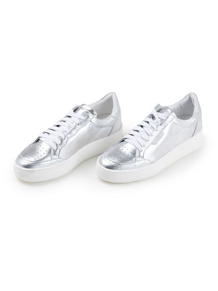 – zapięcie: sznurowanie- powierzchnia: z metalicznym połyskiem- noski: zaokrąglone- noski i zapiętki: wzmocnione- skórzana wkładka: tak- dookoła gumowanie- podeszwa: antypoślizgowa