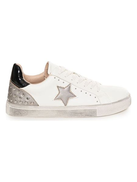 – zapięcie: sznurowanie- noski: zaokrąglone- noski i zapiętki: wzmocnione- detale: ozdobne nity, metalicznie błyszczące elementy- dookoła gumowanie- podeszwa: antypoślizgowa
