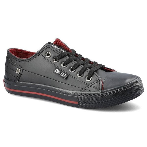 Trampki damskie Big Star, przeszywana skóra ekologiczna ze sznurowaniem na płaskiej podeszwie, czarne, HH274268