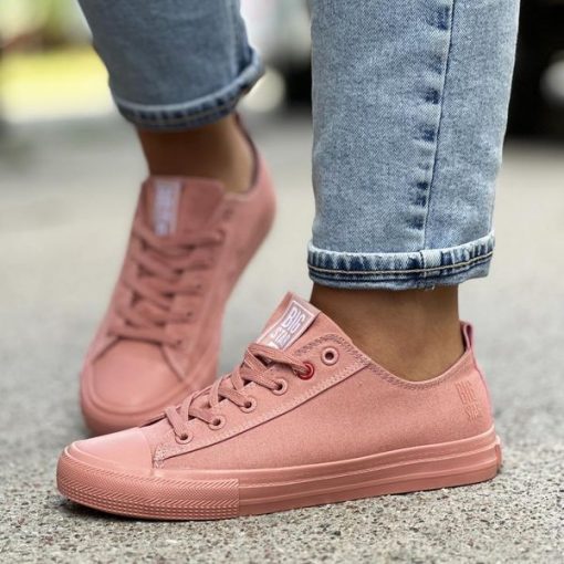 Różowe trampki damskie BIG STAR:są pełnowartościowe w I gatunkucholewka wykonany z przewiewnej tkaninysą staranie wykonane i odznaczają się wysoką trwałościąmają elastyczną, antypoślizgową podeszwę wykonaną z gumywysokość optyczna spodu to około 2.7 cm, spód fizycznie ma około 1.5 cm Kolor: Nude GWARANCJA na 12 miesięcy