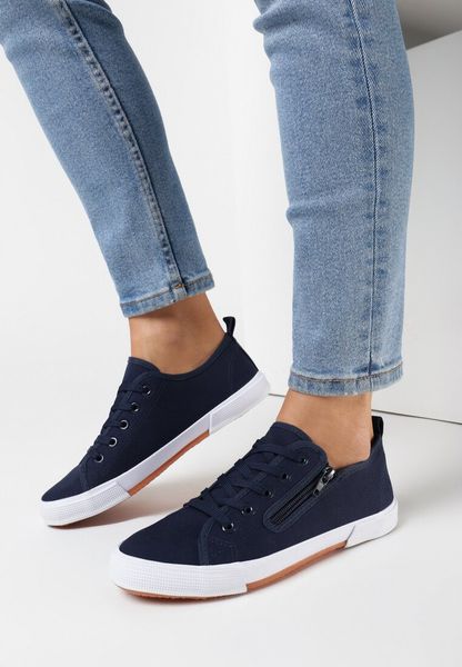 Tenisówki Poreinilla na kauczukowej podeszwie z tłoczonymi wstawkami przy nosku i pięcie. Z niską cholewką ozdobioną suwakiem po boku. Wiązane na płaskie sznurowadła. Wykonane z materiału tekstylnego. Basicowy fason pozwoli Ci na dopasowanie ich do wielu codziennych outfitów!