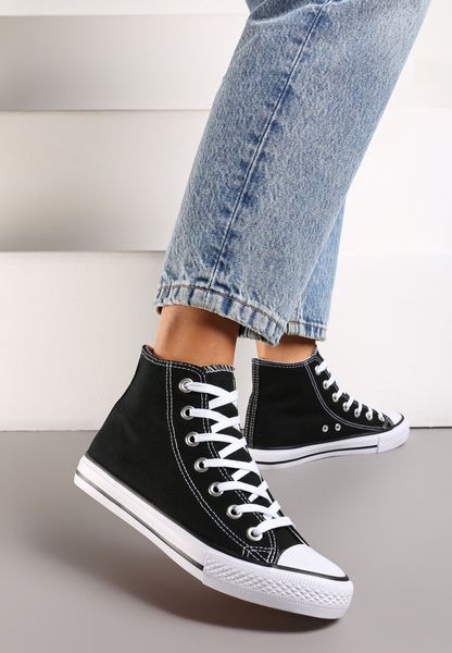 Trampki Aqiafa z cholewką kończącą się nad kostką. Z okrągłym noskiem powleczonym gładką gumą, na płaskiej podeszwie z delikatnym tłoczeniem. Wiązane z przodu. Wykonane z materiału tekstylnego. Rekomendujemy wybór większego rozmiaru. Zestaw je z legginsami, luźną bluzą, a wokół bioder zawiąż koszulę w kratę. Szałowy look w nonszalanckim stylu gotowy!