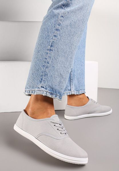 Szare Klasyczne Sznurowane Tenisówki na Płaskiej Podeszwie Efona