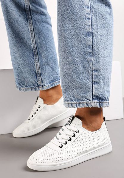 Biało-Czarne Tenisówki z Perforacją i Ozdobną Taśmą na Języku Ylaria