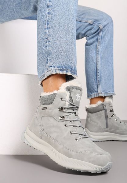 Jasnoszare Sznurowane Traperki na Grubej Podeszwie Ocieplane Futerkiem Zinirae