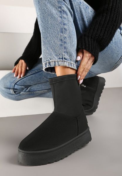 Czarne Płaskie Ocieplane Śniegowce z Elastyczną Cholewką Sevidia