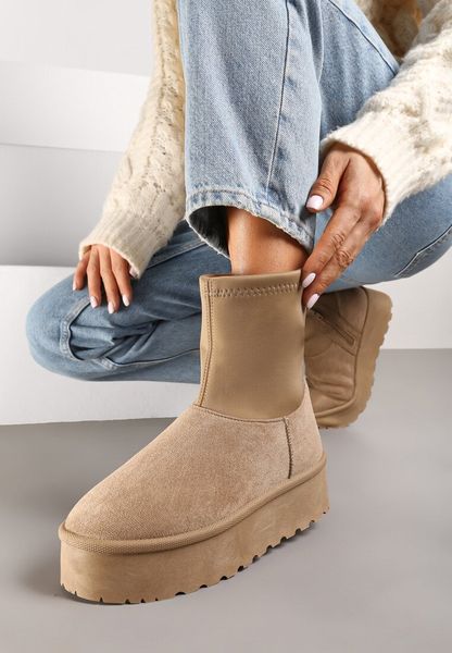 Ciemnobeżowe Śniegowce na Grubej Podeszwie z Dopasowaną Cholewką Lannira