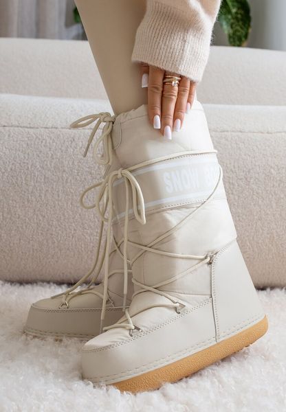 Beżowe Ocieplone Śniegowce z Długą Cholewką na Platformie Carvina