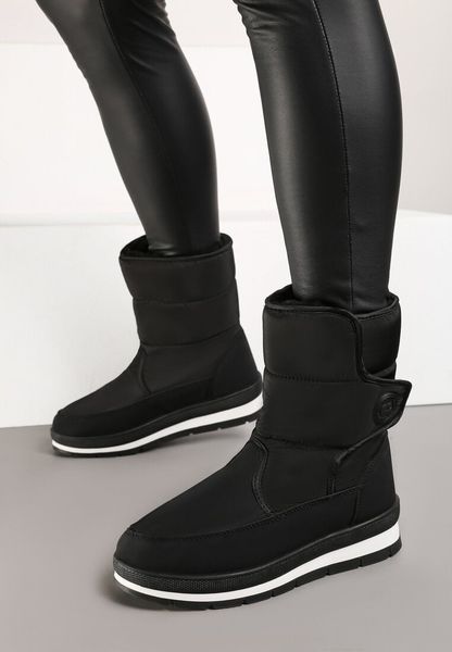 Czarne Płaskie Śniegowce z Pikowaną Cholewką i Tłoczoną Aplikacją Niarith