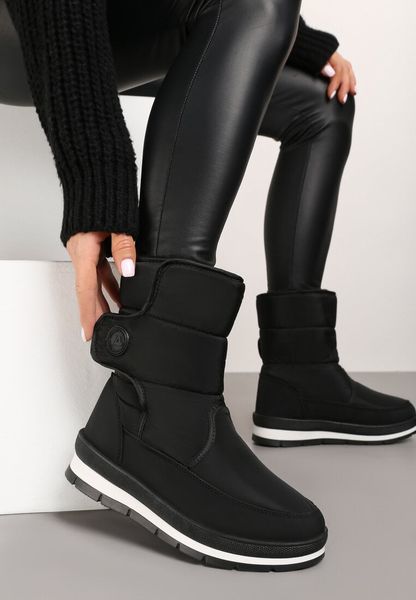 Czarne Płaskie Śniegowce z Pikowaną Cholewką i Tłoczoną Aplikacją Niarith