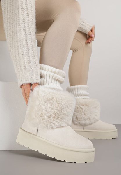 Beżowe Śniegowce za Kostkę Mocno Ocieplane z Futerkiem na Platformie Reilanna