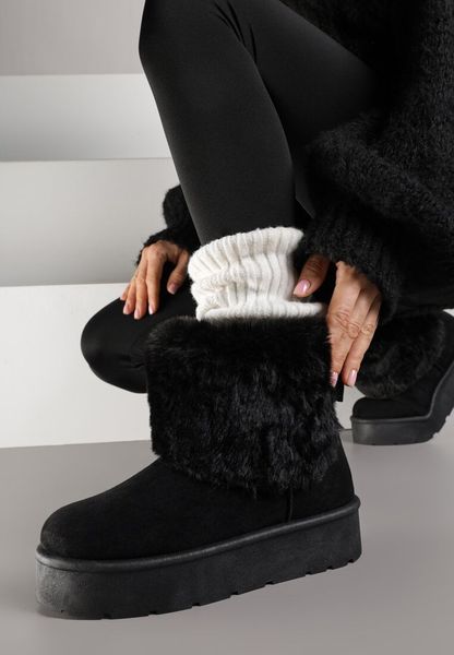 Czarne Śniegowce za Kostkę Mocno Ocieplane z Futerkiem na Platformie Reilanna