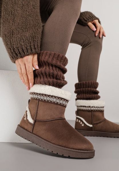 Ciemnobrązowe Wsuwane Śniegowce Zdobione Futrem i Haftem Mevittia