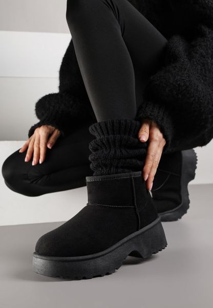 Czarne Śniegowce z Imitacji Zamszu o Wsuwanym Fasonie na Platformie Reilessa