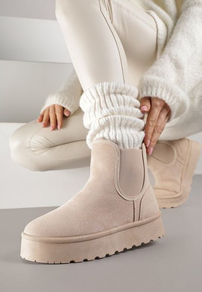 Beżowe Śniegowce na Platformie Typu Sztyblety Ahelina