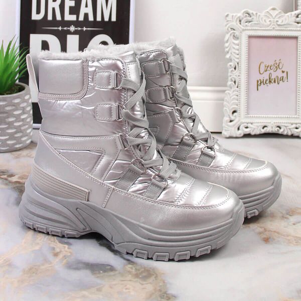 Śniegowce damskie sznurowane metaliczne srebrne Potocki PY16061