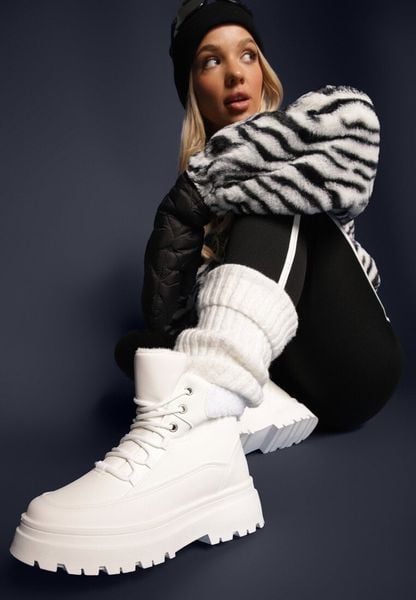Białe Śniegowce na Niskiej Platformie z Ozdobnie Sznurowaną Cholewką Zinneitha