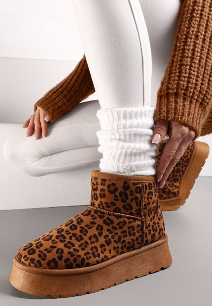 Panterkowo-Brązowe Krótkie Śniegowce z Ekozamszu na Niskiej Platformie Lennael