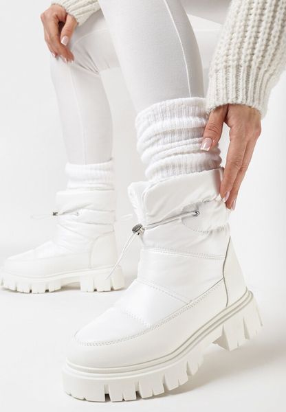 Białe Pikowane Śniegowce na Grubej Podeszwie ze Ściągaczem Orbica