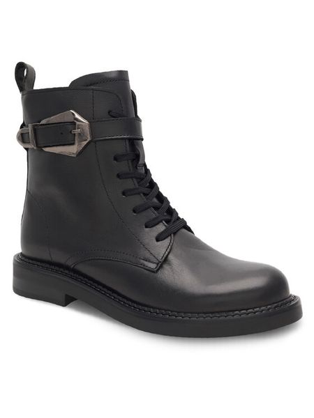 Czarne Śniegowce ze Skóry Naturalnej na Płaskiej Podeszwie z Futrzanym Ociepleniem Venithra