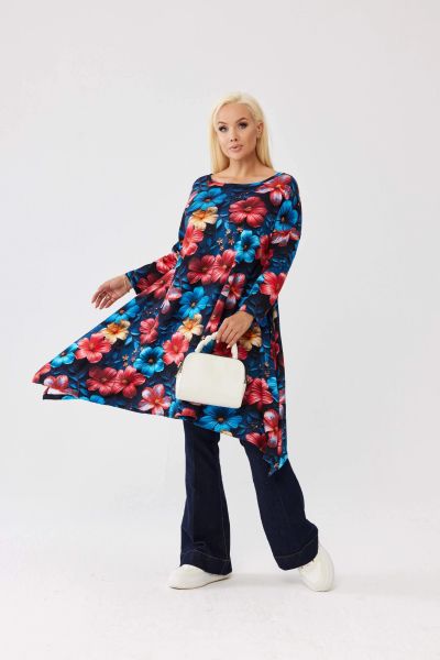 Asymetryczna tunika w hibiskusy OVERSIZE PLUS SIZE XXL